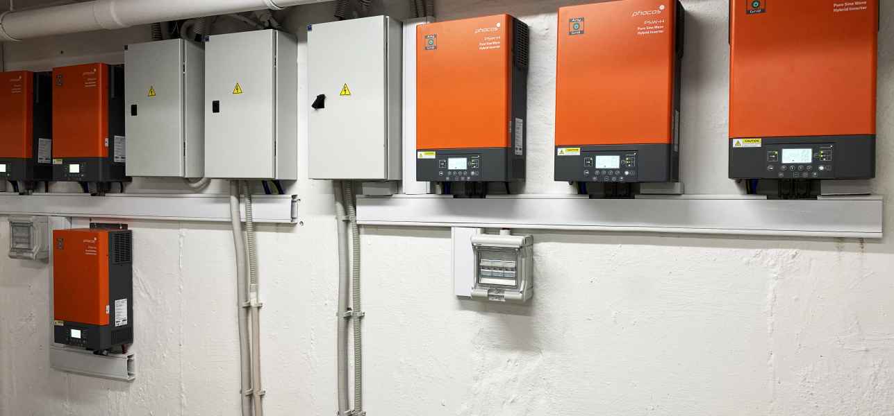 • 6 Inverters Phocos PSW-5000-48 (Τριφασική λειτουργία, ισχύς εξόδου 10Kw / φάση)